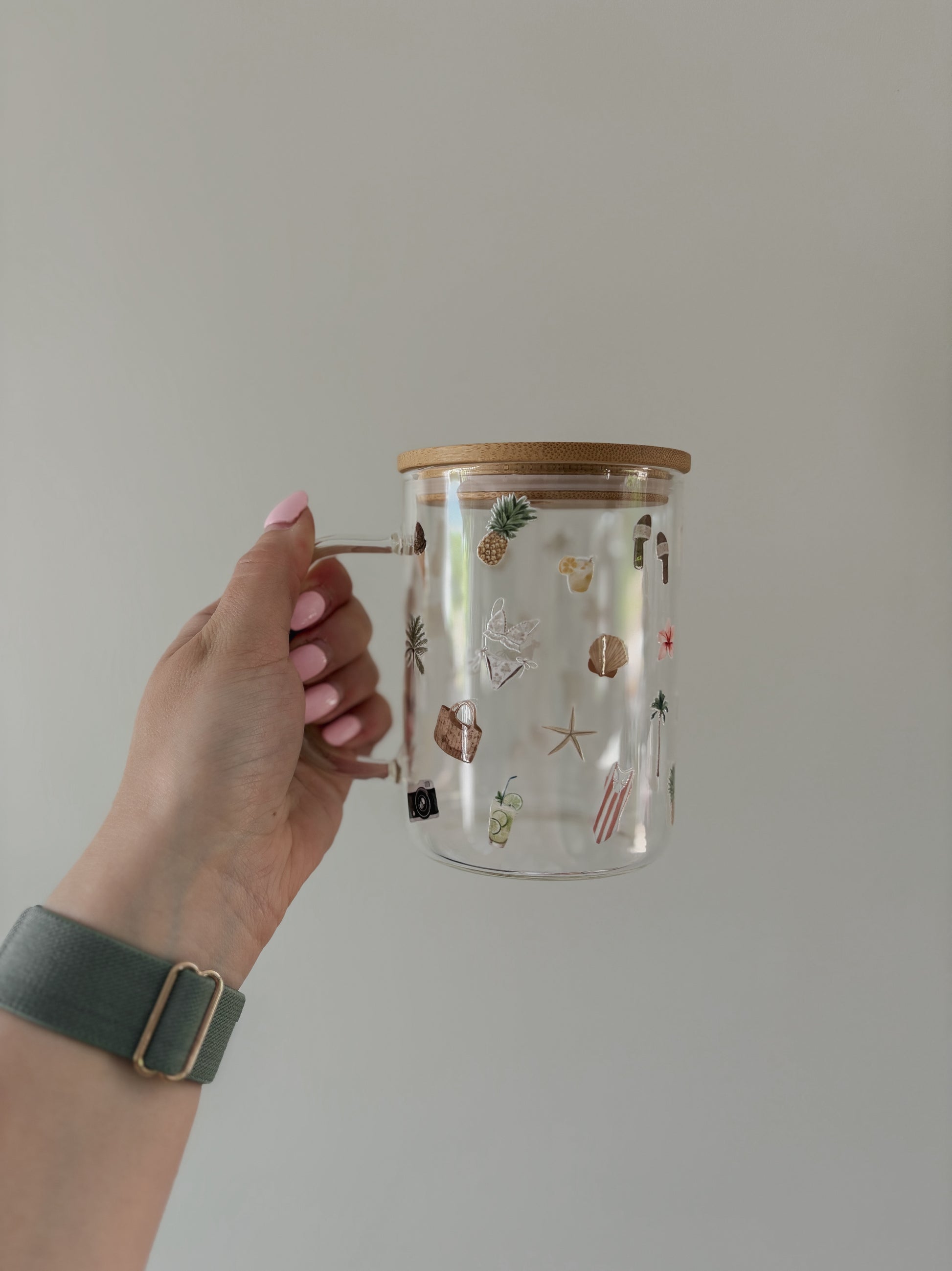 Tasse à café 20oz en vitre + couvercle en bamboo + paille