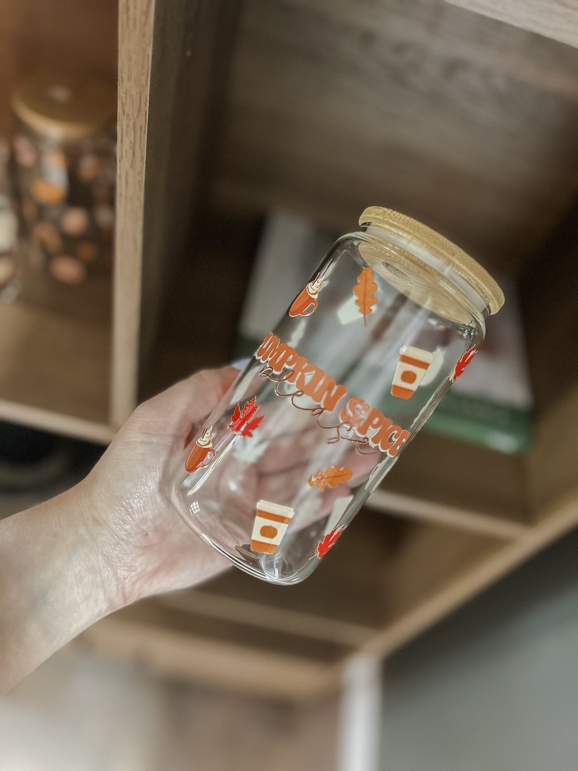 Verre à boire 16oz en vitre + couvercle en bamboo + paille en vitre